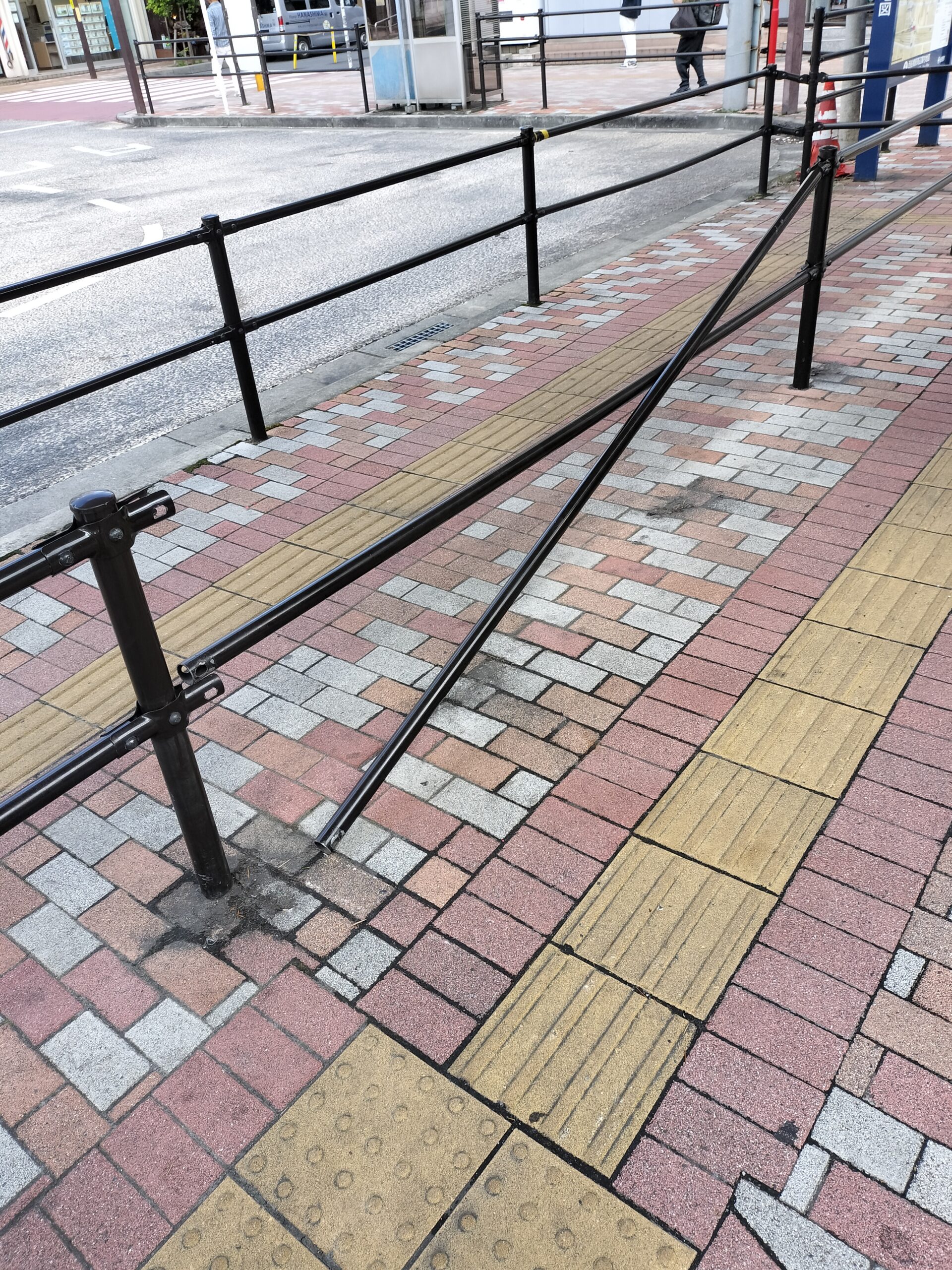 西船橋駅前、タクシー乗り場のガードレールの破損しており